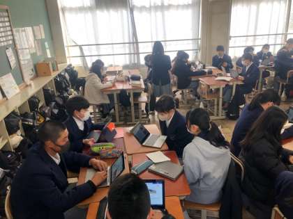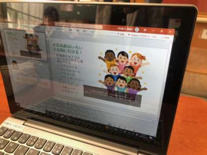 グループで共同作業を進め、1つの発表資料にまとめました。