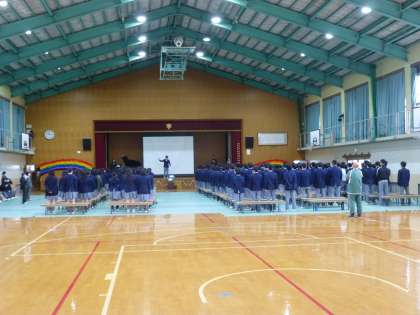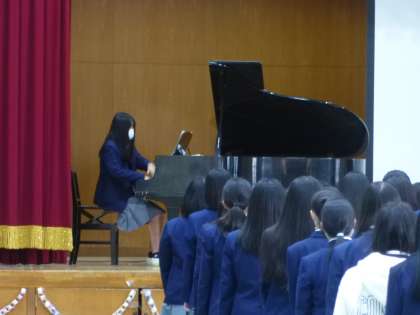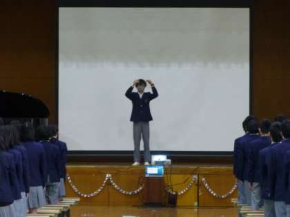 最後は3年生からの出し物です。感謝のメッセージとともに、素敵な歌を披露してくれました。あまり練習の時間も確保できなかったにもかかわらず、本当に気持ちのこもった歌声でした。いよいよ明後日は卒業式。今日以上の素敵な歌を聞かせてくださいね!