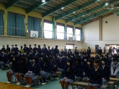 本日2・3限目に、卒業式予行を行いました。入場から卒業証書授与、起立・礼・着席のタイミング等、一つ一つの動作・作法を確認しながら予行に取り組みました。やや緊張している様子でしたが、明日は本番。みんなの心を一つにして、温かい卒業式にしましょう!