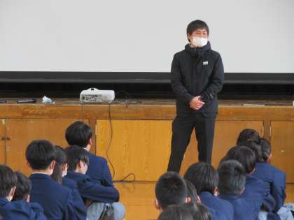 2年生の学年集会をしました。新しく学年に入られた先生方の紹介と各教科の受持ちクラスが発表されました。他にも、先生方から学習や生活に関するお話がありました。その中で「卒業式をどのように迎えたいですか」という問いかけに、「今まで育ててくれた人に感謝の気持ちを伝えて卒業したい」、「別れを惜しむ卒業式にしたい」という声が上がりました。さすが2年生ですね。これらの意見を2年生共通の思いとして掲げてほしいと思います。いよいよ、明日から教科の授業が始まります。3年生に向けて『準備』を始め、素敵な1年間が過ごせるように学習に部活動に励んでいきましょう。