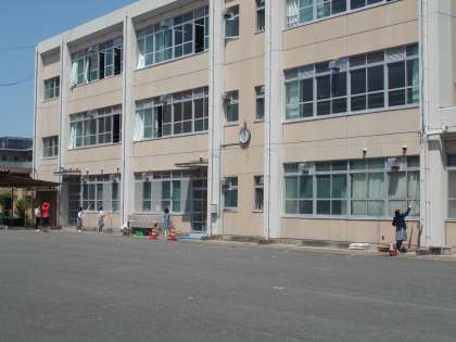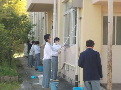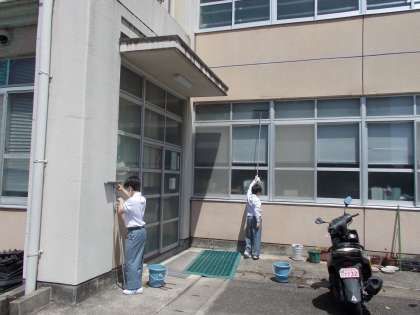 職業の時間で窓ガラスの清掃を行いました。 隅々までキレイに掃除しました!