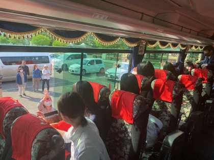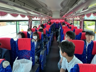 民泊先の方に見送られ、太刀洗へ向かう様子です。