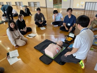 教職員研修【救命救急研修】 公開日 2023/05/24 更新日 2023/05/24 学校の様子 定期テストの午後は、教職員対象の救命救急研修を行いました。 不測の事態が起こった場合でも、かけがえのない命を守るため、教職員は研修を重ねています。 講師の先生をお迎えして、心肺蘇生法の実地訓練、実際の事態を想定してのシミュレーション、対応についての協議会など、中身がぎゅっと詰まった研修でした。