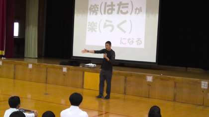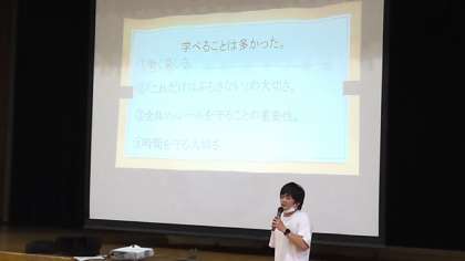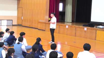 2年生の学年集会では,4名の2年生の先生よりこれまでの就労体験について話していただきました。先生方の話からは,お金を稼ぐことの大変さや働くことで大切なことを学んだり,体験したりしたことを伝えられていましたね。今日の集会で学んだことを,チャレンジ体験だけでなく,今後のみなさんの生活にもいかしていきましょう。