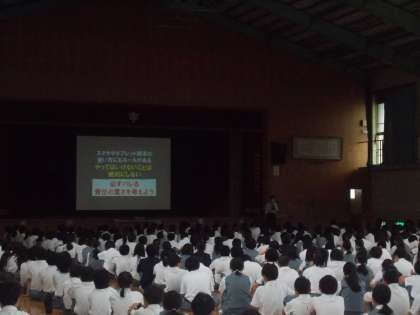 京都市教育委員会より講師の方をお招きし、子どもたちの取り巻く様々なトラブルや危険から身を守る術をお話しいただきました。