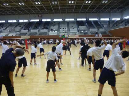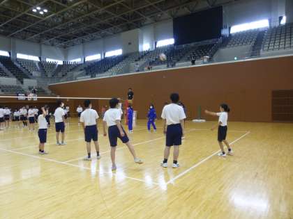 開会式・準備体操のあと、バレーボールを行いました。昨年度は全敗してしまいましたので、今年はリベンジ!みんな気合十分です!