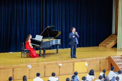 始業式 公開日 2023/08/25 更新日 2023/08/25 学校の様子 始業式でのミニオペラコンサートの様子です。 演目は 「帰れソレントへ」 「魔王」 「Time to say Goodbye」 「藤森中学校 校歌」 でした。 圧巻の声量と美しい響きに終始圧倒された二十分でした。 安田旺司さん始め、三人の音楽家のみなさん、素敵な時間をありがとうございました!