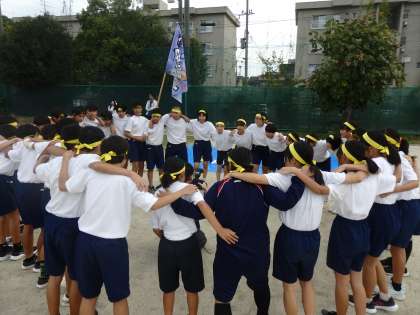 競技の途中で円陣を組んだり,声掛けをしたりして,鼓舞しました。