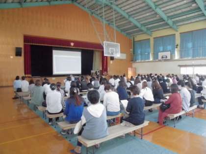 進路保護者説明会 公開日 2023/10/18 更新日 2023/10/18 学校の様子 本日、体育館にて進路保護者説明会を開催しました。来週から行われる3年生の進路保護者会に先駆けて、今年の状況など、進路主任の神楽より説明をさせていただきました。 お忙しい中、100人を超える参加をいただき、本当にありがとうございます。