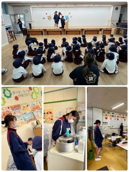 チャレンジ体験4日目 各事業所の様子1 公開日 2023/11/06 更新日 2023/11/06 学校の様子 いよいよ最終日です。これまで体験を通して学んだことをいかし,仕事に取り組んでいます。 保育施設の様子です。