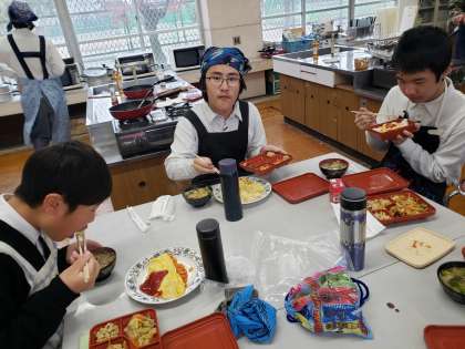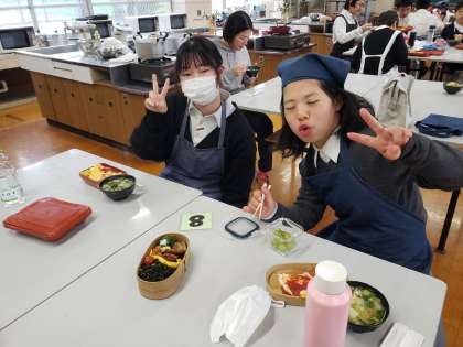 11組の調理実習 公開日 2024/02/22 更新日 2024/02/22 学校の様子 2月20日(火)に、11組は『入試合格祝い』と称して調理実習を実施しました。11組の畑で育てた野菜(だいこん、さつまいも、長ネギ)を調理して味噌汁を作りました。そして、玉子料理も各自で工夫し、創作料理に挑戦しました!