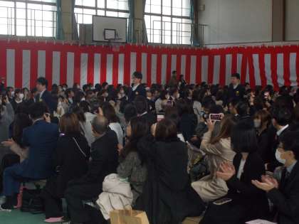 晴れやかな天候の中、第76回卒業証書授与式が厳粛に挙行されました。今回はコロナ感染の規制が緩和され、久しぶりに本来の形の卒業式になりました。3年間、藤森中学校で学んだことをふり返りながら、卒業生それぞれが夢や希望に向かって巣立っていきました。卒業生のみなさん、これからの益々の活躍を教職員一同、祈念しております。卒業、あめでとうござます。みなさんの未来に幸あれ!!
