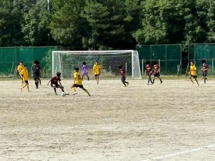 サッカー部 秋季大会 公開日 2024/10/07 更新日 2024/10/07 学校の様子 10月6日(日)にサッカー部の秋季大会予選3日目が行われました。 試合は前半に先制されましたが、後半に追いつき、手に汗握る試合となりました。 しかし、結果1ー3で敗れ、予選敗退。 どのチームが勝ち上がってもおかしくない難しい予選でしたが、この悔しさをこれからのトレーニングに生かしてほしいと思います。