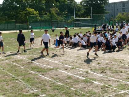 晴れやかな天候の下、本日1・2時間目に2年生の体育大会リハーサルを行いました。これまで体育の授業で練習してきた、学年演舞(ダンス)、各種競技、そして入退場や全体の流れを確認しました。競技、演目の練習については、初めて学年全員で練習したにもかかわらず、本番さながらに大いに盛り上がりました。