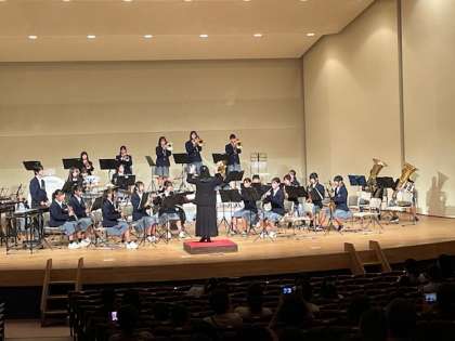 第27回定期演奏会1 吹奏楽部 公開日 2024/10/15 更新日 2024/10/15 学校の様子 10月14日(月・祝)、東部文化会館で、吹奏楽部の第27回定期演奏会が開催され、会場に駆けつけてくださった皆さんを素晴らしい演奏で楽しませてくれました。 また、3年生にとってはこの演奏会が中学校生活最後の舞台となります。3年間の思いのこもった演奏で、会場の皆さんに感動を与えてくれました!3年生の皆さん、お疲れさまでした!
