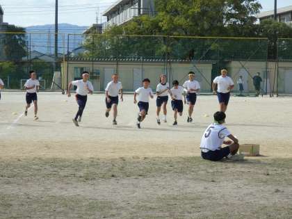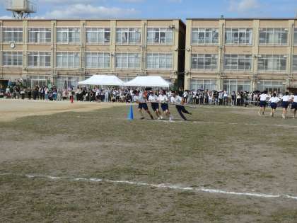 10月中旬とは思えないほど気温が上がり、暑い中での開催となりましたが、開会式から閉会式まで、3年生たちの体育の部にかける熱い気持ちが随所に見られ、すばらしい体育の部となりました。部活動リレー、70m走、借り物競走、台風の目、学級対抗リレーとすべての競技において、競技をしている人も応援をしている人も一体となり、大いに盛り上がりました。閉会式で体育委員さんからの挨拶にもありましたが、この力を次は進路に向けて出し切っていけたらいいですね。学年一丸となって頑張っていきましょう!