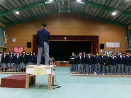 3年生を送る会その4 公開日 2025/03/11 更新日 2025/03/11 学校の様子 3年生は1・2年生に向けこれまでの学校生活の思い出とこれからの決意を伝える群読と体育館中に響き渡る合唱を披露しました。圧巻の発表に体育館にいたすべての生徒、教職員が感動の渦に飲み込まれました。3年生の伸びやかな声量、美しい調べに一人一人の大志を感じることができました。