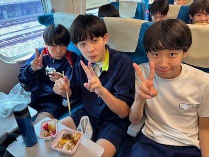 新幹線内で昼食を食べている様子です!