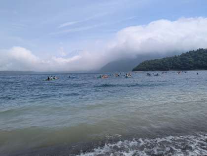 富士山も山頂だけ見えています! 波や風があるのでみんな悪戦苦闘しています!