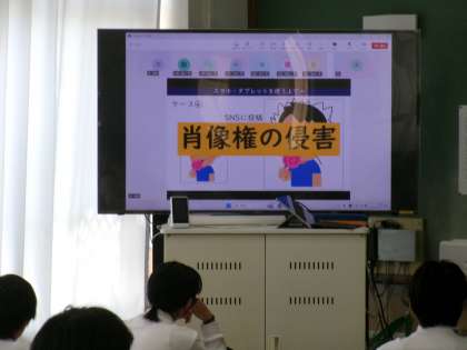 本日4時間目、2年生は情報モラルについて学びました。事前の調査より2年生はどれくらいの時間、スマートフォンやタブレット端末を使用しているか、どのように使用しているかの結果を共有しました。続けて、昨今のSNSに関わる事件を学び、適切に使用できているか、トラブルに巻き込まれないようにするためにはどうするべきかなどを学びました。