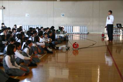6限、1年生対象の「ケータイ教室」が行われました。なぜきまりがあるのか?なぜきまりを守らないといけないのか?そんなお話から始まった今日のケータイ教室。