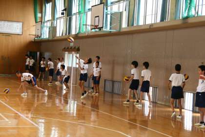 体育授業 バレーボール 公開日 2014/06/10 更新日 2014/06/10 学校の様子 体育館では2年生男子、北バレーコートでは1年生の女子がバレーボールの授業。 1年生の女子は元気いっぱい。得点が入ると、写真のように飛び上がって喜びを表現しています!