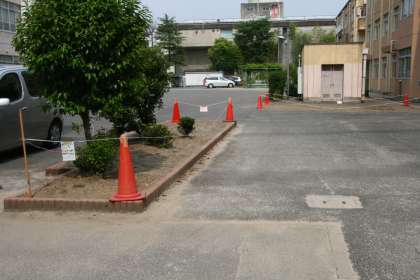 校内の空いている場所を耕しました。(赤のコーンで囲われた場所)