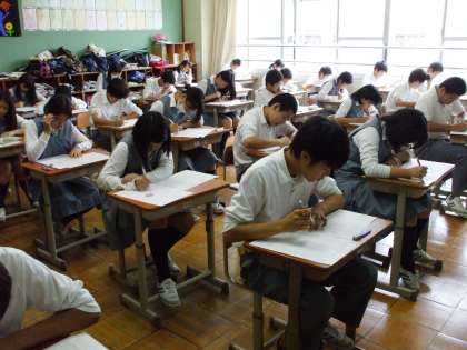 テスト。どの生徒も、一生懸命にとり組んでいます。「静かに!」や「はい、考えて!」などの指示がなくとも、懸命に取り組む。なぜだろう?