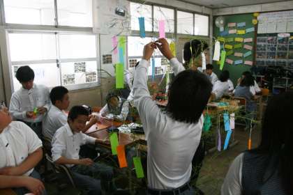 ♪ のきばにゆれる〜 (七夕その2) 公開日 2014/06/30 更新日 2014/06/30 1年生 どの生徒も嬉しそう。 自分の手でモノを作り出すことは、一つの喜びです。 季節の風物、七夕...。 心地よい風が吹き抜けましたか。