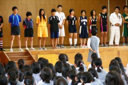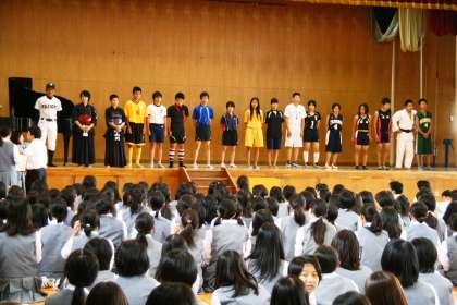 夏季大会 激励会 公開日 2014/07/02 更新日 2014/07/02 学校の様子 6限は体育館で「夏季大会激励会」が行われました。吹奏楽部の演奏で入場する各キャプテン。体育委員長からの激励の言葉。そして、各キャプテン一人ひとりからの決意の言葉。さぁ、すべての力が出し切れるよう、試合に向けて調整していこう。