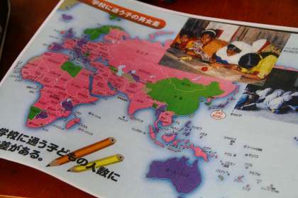 人権学習 (3年生) 公開日 2014/07/03 更新日 2014/07/03 3年生 「男」というだけで 「女」というだけで 偏ったフィルターを通して、見たり感じたりしていることはないだろうか。 色分けされた世界地図を見て考える。なぜ、小学校に通う人数が、男女によって大きく差がある国があるのだろう。 3年生の人権学習は、昨日に続いて2時間目。