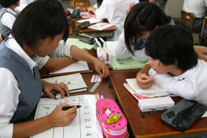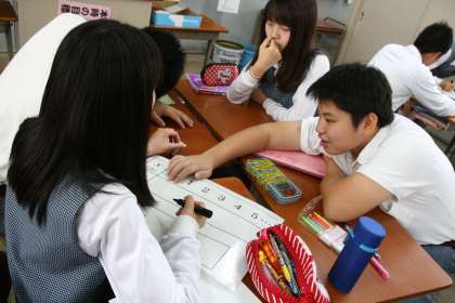 1次関数の世界へ (2年 数学) 公開日 2014/07/04 更新日 2014/07/04 2年生 bcm水が入っている、水そうに毎分2cmの割合で水を入れる。入れ始めてからの時間x分と、水面までの高さをycmとして関係を式に表そう! 考える前から「ムリ!」と答えてしまう数学苦手の人もいるでしょう。 生徒たちはグループによって設定の異なる問題に挑戦していました。 y=ax+b
