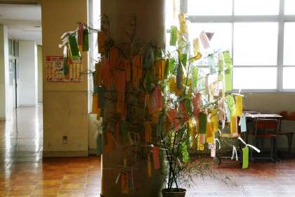 今日は七夕。先週、1年生の七夕飾り作製の様子を伝えましたが、この飾りは3年生です。3階のホールに飾ってあります。