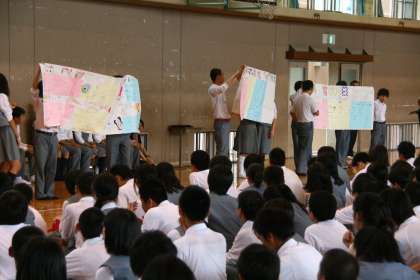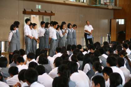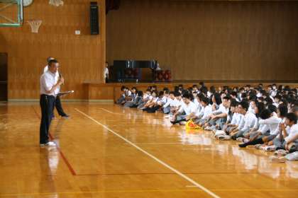 有意義な夏休みを! 公開日 2014/07/18 更新日 2014/07/18 学校の様子 6限目の全校集会では、委員会を含む生徒会からの呼びかけや活動報告が行われました。どれも「3つの行動目標」を意識したものばかりでした。 最後に校長先生から、将来につながる「今」としての授業の大切さなどのお話がありました。 明日からの夏季休業。部活動はもちろん、学習や趣味に没頭しよう!