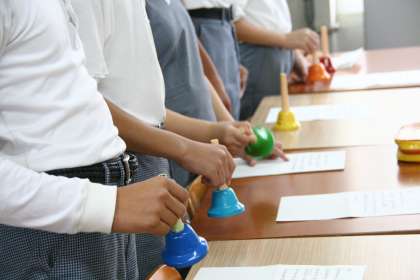 ハンドベルの音色が.... 公開日 2014/08/27 更新日 2014/08/27 学校の様子 2号館の2階から漏れ聞こえてきたのはハンドベルの音色。 11組のみなさんの「文化の部」に向けた練習です。 聞くところによると、劇とハンドベルの演奏を発表する予定だとか...。 劇の生徒も、一生懸命に練習を始めていました。 劇の内容とハンドベルの曲名は、まだヒミツです。