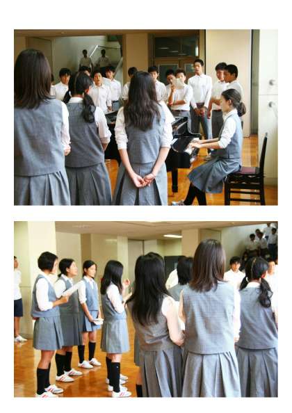 7限目「合唱練習」 始まる! 公開日 2014/09/01 更新日 2014/09/01 学校の様子 今日から1か月間、7限目の合唱練習が続きます。 合唱コンクール本番は9月30日(火)。その前日まで、生徒たちはさまざまなできごとにもまれながら、クラスとしての合唱をつくり上げていきます。 教室はもちろん、廊下やホールを使ってのパート練習。まだまだ早いですが、音楽室では実際に合わせての合唱...。 さて、今年はどんなドラマがくり広げられるのでしょうか。