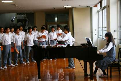 2階ホールで歌っている3年生。声も安定していて、いい感じで歌っています。