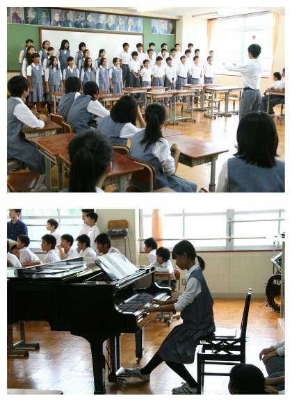 1年生の合唱練習(音楽室)のようす。