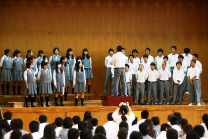 「音叉(おんさ)」という理科の実験器具がありますが、一つの音叉を鳴らすと、もう一方の音叉も同じように鳴り出します。「共鳴」という現象。合唱にも似たところがある。「響き合う」という言葉がありますが、一人ひとりの歌声を響かせることで、みんなの歌声がいっそう響き合う。聴く人たちとも「響き合う」関係はつくられる。