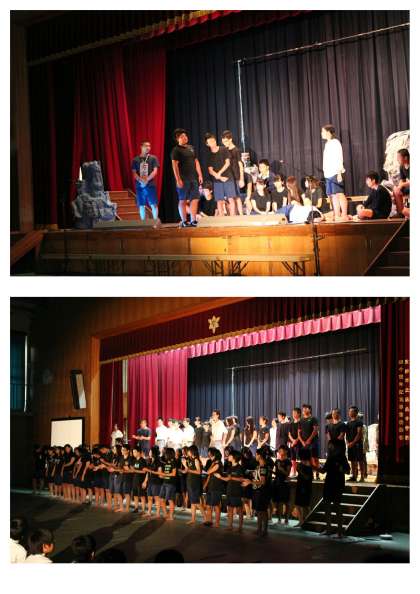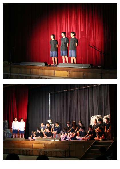 修学旅行で訪れた沖縄をテーマとした劇を行った3年生。