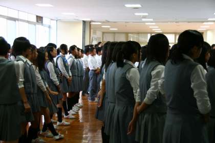 学年合唱を3Fホールで 公開日 2014/09/26 更新日 2014/09/26 3年生 3年生は学年合唱の練習。 ♪ 信じることに理由はいらない....信じることは生きるみなもと ♪ 合唱曲名は「信じる」。