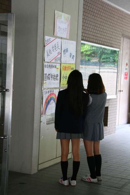 ピロティーには全立候補者の選挙ポスターが貼りだされています。