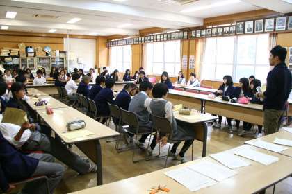 体験事業所別 オリエンテーション 公開日 2014/10/15 更新日 2014/10/15 2年生 2年生の生き方探究・チャレンジ体験、今日の6時間目は事業所別に集まって、担当の先生から説明を受けました。 下の写真はミーティング室でのようす。保育園や幼稚園関係の60名あまりが集まりました。例年のことですが、保育関係は人気があります。
