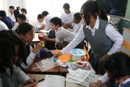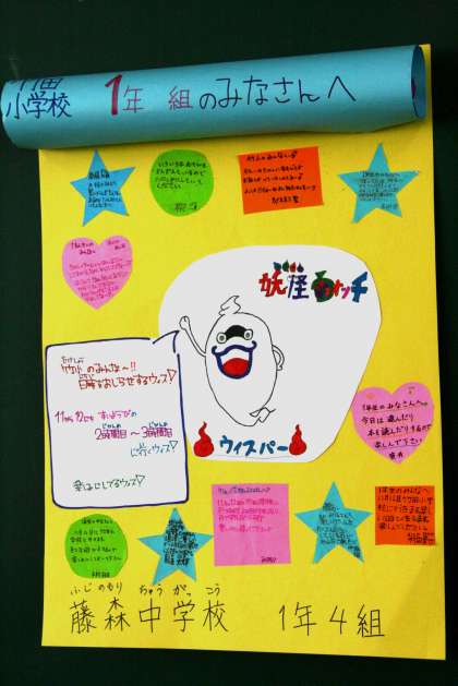 小学生に渡す大判の招待状 公開日 2014/10/15 更新日 2014/10/15 1年生 小学校訪問の日時や内容などを記した招待状ができてきました。 立体的なものや、彩りの鮮やかなものなど...。 中には廊下で、「渡す生徒役」と「小学校の先生役」になって、シミュレーションしている生徒たちもいました。