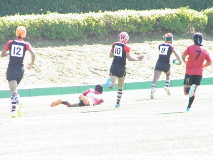 しかし,藤森もバックスが一瞬の隙を突き1トライ返し前半は7−10。