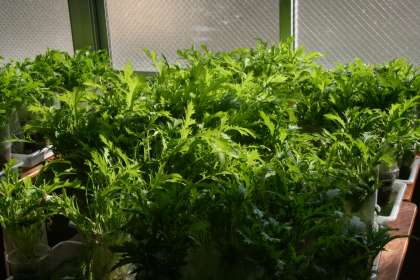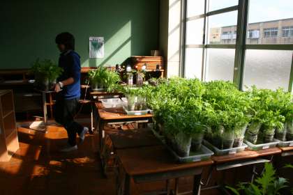フサフサしてます 公開日 2014/10/21 更新日 2014/10/21 学校の様子 1年生の技術で栽培している「京水菜」。もうこんなに成長しています。 生徒のみなさんは週に一回、成長のようすを確かめて記録していますが、その陰では教科担当の先生による時間をかけた手入れが毎日行われています。毎日まいにち、朝早くからの手入れ...。 そんな目にふれないところでの尽力に支えられて、水菜の観察ができているのです。