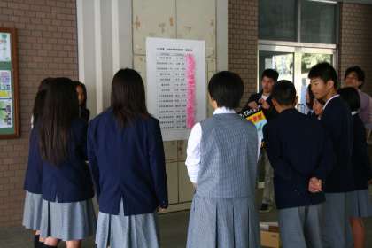 昨日の生徒会本部役員選挙の投票結果が、朝の8時に掲示されました。