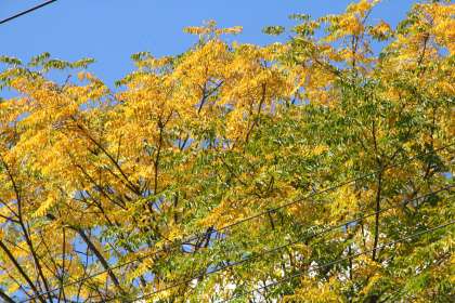 名神高速道路、法面の木の紅葉(黄葉)。 朝晩は季節がひとつ進んでいるかのようです。