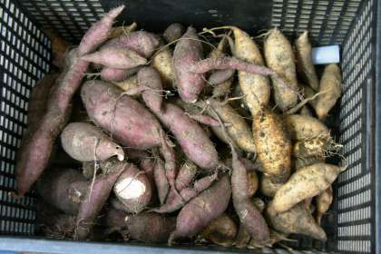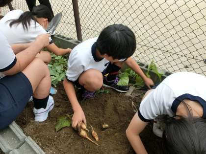 サツマイモを収穫しました (11組) 公開日 2014/11/04 更新日 2014/11/04 学校の様子 11組のみんなが育てていたサツマイモの収穫が終わりました。土と水と太陽、そして生徒たちの作業が育てた、たくさんのサツマイモ...。「実りの秋」「収穫の秋」ですねぇ。 掘り出したのは、普通の?サツマイモと糖度の高い安納芋(あんのういも)系のサツマイモの2種類。サツマイモは掘り出した後、しばらく寝かせておくと甘みが増すらしいので、今しばらくはこのままの状態で置いておきます。