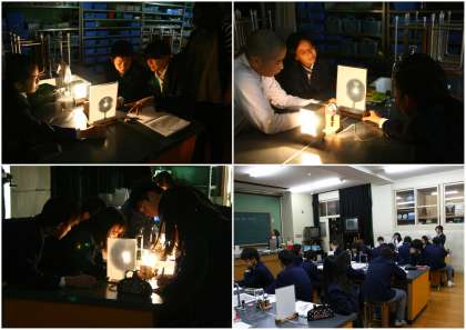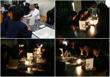 部屋を暗くしましたが、興奮する生徒もなく、先生の指示通りに実験は進みました。
